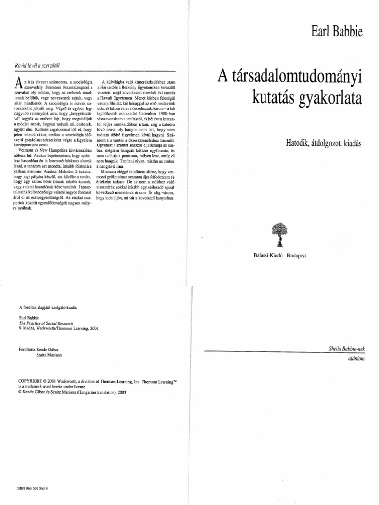 Earl Babbie Tarsadalomtudomanyi Kutatas Gyakorlata 0 Pdf