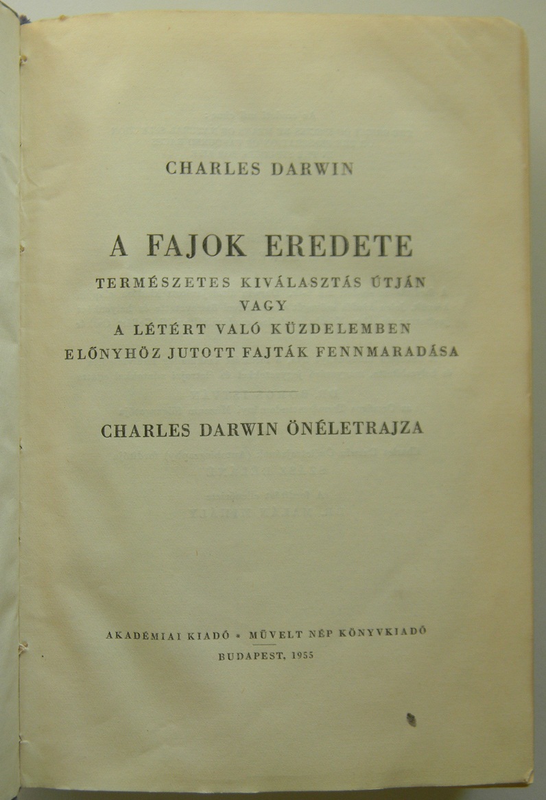 Charles Darwin A Fajok Eredete Akademiai Kiado Muvelt Nep Konyvkiado 1955 Antikvarium Hu