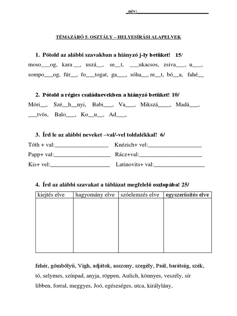 Nyelvtan Gyakorló Feladatok 5 Osztály