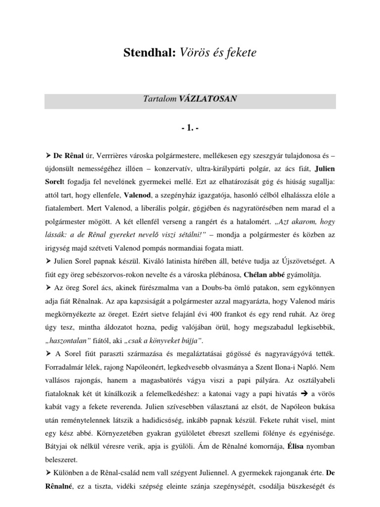 Stendhal Voros Es Fekete Tartalom Olvasonaplo 1 Muelemzes Blog