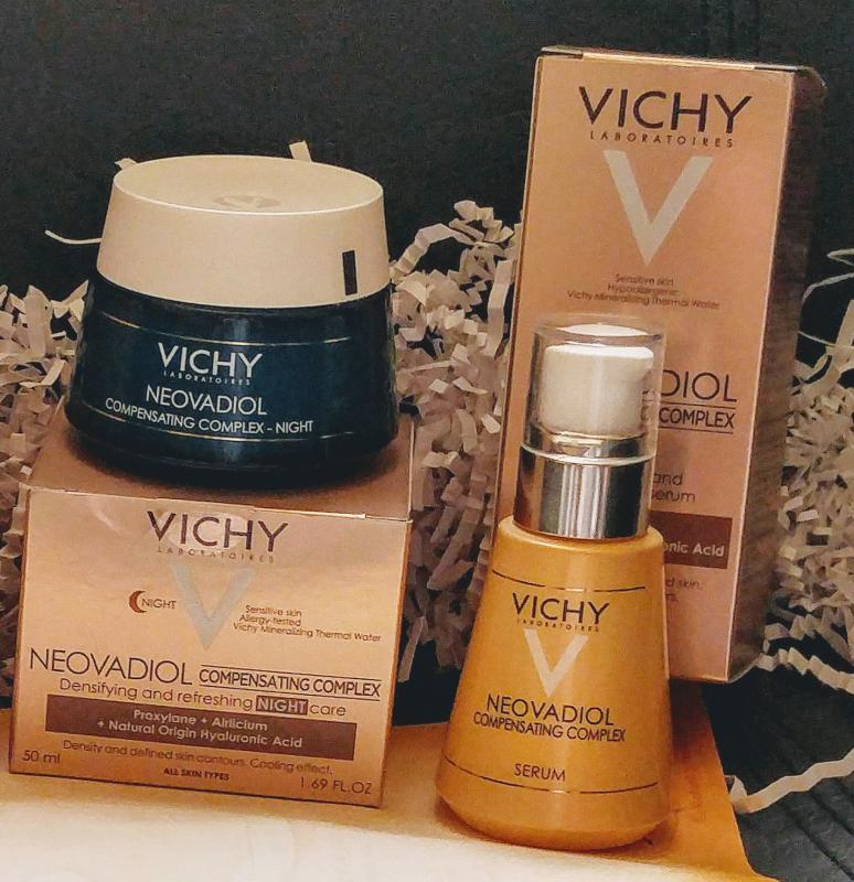 Dullness loss of density sagging and dryness. Created for women who experience hormone related ageing this cooling gel cream pampers skin that is prone to dryness and puffiness. We are delighted that our neovadiol night compensating complex has left your skin smooth and glowing. Replenish your skin as you sleep with the rejuvenating power of the vichy neovadiol compensating complex densifying and replinishing night care a smoothing and plumping overnight treatment.