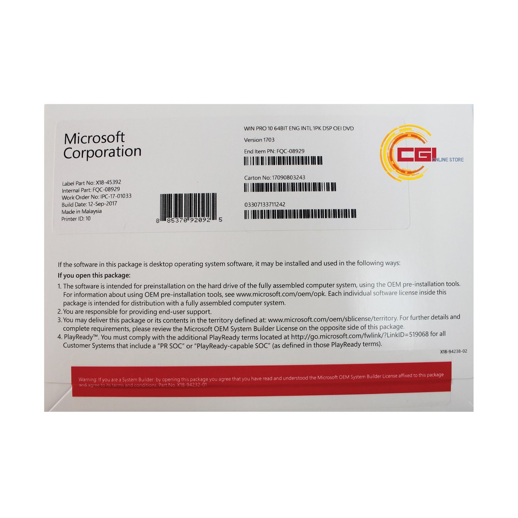 Microsoft Windows 10 Professional English 64 Bit Oem Pack Fqc 08929 Shopee Malaysia